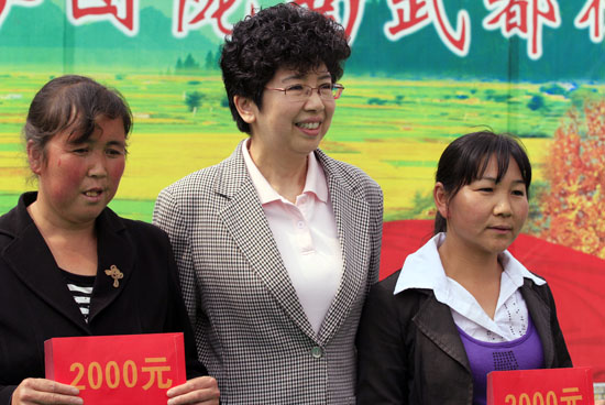 趙實書記代表中國文聯向貧困大學生家庭、文藝支教學校貧困生贈送助學金。中國文藝網 白偉 攝