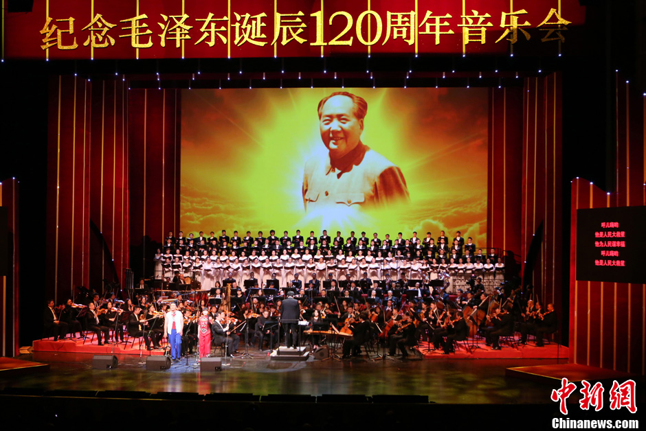 12月25日晚,《人民的毛澤東》紀念毛澤東誕辰120周年音樂會在國家大劇院舉行,上千名首都各界群眾共同觀看了這臺音樂會。中新社發 李慧思 攝