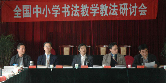 2008年10月26日—27日,由“書法普及:優化德育的有效載體和方式”課題組主辦的全國中小學書法教學教法研討會在北京昌平隆重召開。中國美術家協會分黨組成員、副秘書長、課題組組長張旭光,首都師范大學教授、博導、副組長葉培貴,中央教育科學研究所學術委員會主任程方平,中央教育科學研究所研究院齊欣,中央教育科學研究所副研究員、課題組副組長劉洪,北京書協理事沈莉,華東師范大學教授周斌,海燕出版社社長鄭榮,首都師范大學博士姜棟等課題組專家出席了會議,課題組邀請在研討會征文中獲獎代表參加了會議。