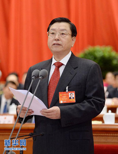 閉幕會由大會主席團常務(wù)主席、執(zhí)行主席、全國人大常委會委員長張德江主持。
