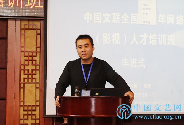 12月21日晚,全國(guó)中青年網(wǎng)絡(luò)(影視)人才培訓(xùn)班的學(xué)員以“新時(shí)代、新影視”為主題,進(jìn)行了分組討論,學(xué)員們踴躍發(fā)言,氣氛熱烈。圖為第四組學(xué)員代表?xiàng)钴?span style="border-right: 0px; padding-right: 0px; border-top: 0px; padding-left: 0px; padding-bottom: 0px; margin: 1em 0px 0px; word-spacing: 0px; font: 16px/41px 'Microsoft YaHei'; vertical-align: baseline; text-transform: none; border-left: 0px; color: rgb(0,0,255); text-indent: 0px; padding-top: 0px; border-bottom: 0px; white-space: normal; letter-spacing: normal; orphans: auto; widows: 1; webkit-text-stroke-width: 0px">在22日舉行的畢班式上發(fā)言。