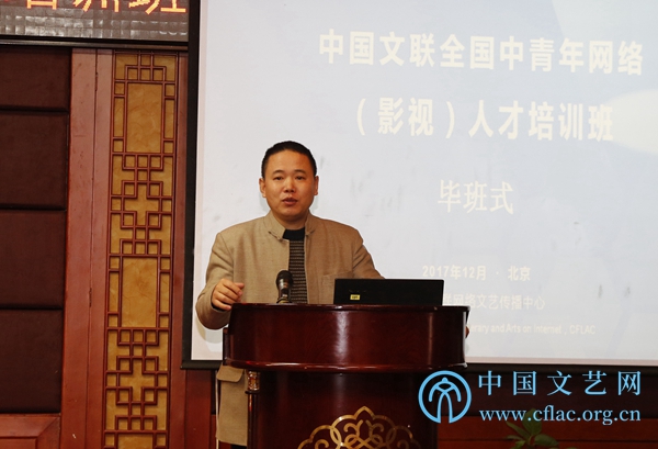 12月21日晚,全國中青年網(wǎng)絡(影視)人才培訓班的學員以“新時代、新影視”為主題,進行了分組討論,學員們踴躍發(fā)言,氣氛熱烈。圖為第一組學員代表魏軍在22日舉行的畢班式上發(fā)言。