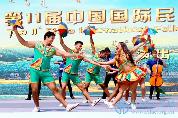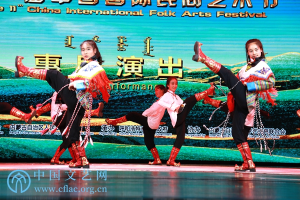 第11屆中國國際民間藝術(shù)節(jié)舉辦期間,參演的中外藝術(shù)團在內(nèi)蒙古呼和浩特多地開展巡演。圖為民族劇院演出現(xiàn)場。中國文藝網(wǎng) 韓雪竹攝