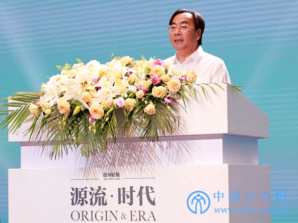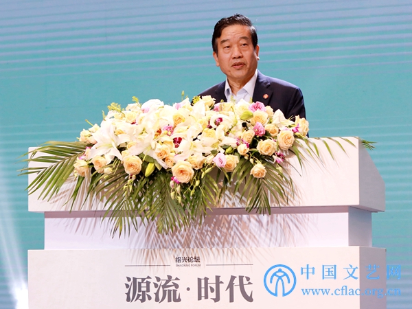 5月25日,“源流·時代”以王羲之為中心的歷代法書與當前書法創作暨紹興論壇開幕,圖為中國文聯黨組書記、副主席李屹在開幕式上致辭。中國文藝網 韓雪竹攝