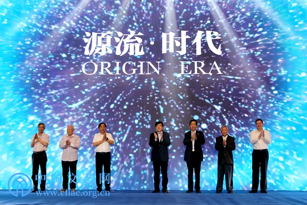 5月25日,“源流·時代”以王羲之為中心的歷代法書與當前書法創作暨紹興論壇開幕,圖為中國文聯黨組書記、副主席李屹,中國書協主席蘇士澍,中國書協顧問朱關田,紹興市委書記馬衛光,紹興市委副書記、市長盛閱春,浙江省文聯書記處書記、浙江省書協副主席兼秘書長趙雁君,中國藝術研究院研究員王玉池等共同啟動活動。中國文藝網 高森攝