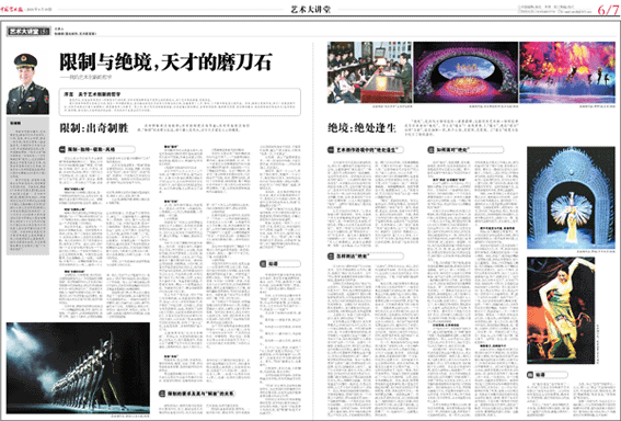 我們國家可稱得上是晚會大國,我們一年所做的晚會,甚至超過其他許多國家幾年晚會的總和,各地集中了人力、物力,幾乎每天都在推出新作品。其實,新推出來的作品,并不一定就是新作品,有的作品理念可能已經很陳舊,或是重復別人的影子。我以為,真正的藝術創新是突破,應該是確立新的理念、求得新的發現、選擇新的角度、進行新的整合、構成新的語言陳述方式(包含新點子、新招數、新辦法),從而形成新的品格。具備這些才是真正的藝術創新。