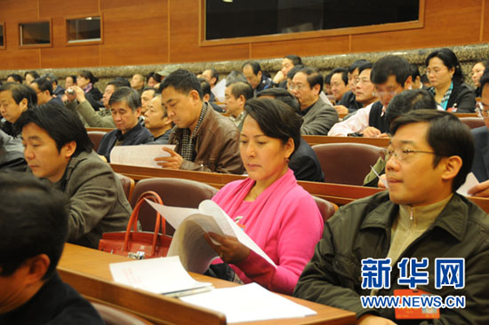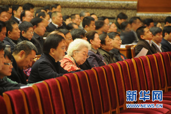 11月21日,中國文聯第九次全國代表大會預備會議在京舉行,會議通過了第九次文代會領導機構和大會議程。這是代表們在認真聽會。新華網 張晉龍 攝