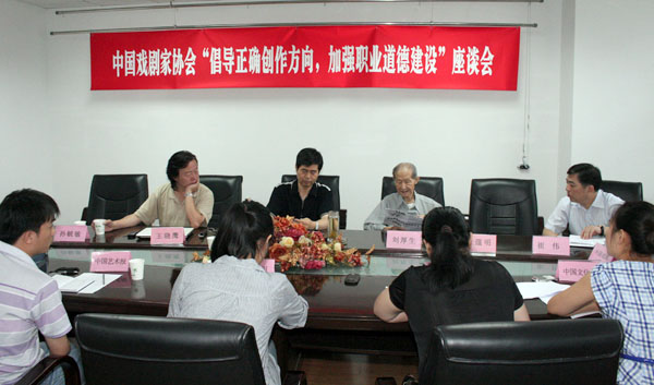 7月29日,中國劇協組織首都戲劇界代表召開“倡導正確創作方向,加強職業道德建設”座談會。圖為座談會會場。中國劇協 林琳 攝