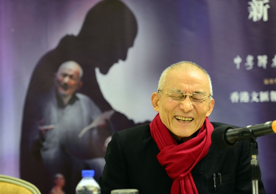 2016年1月11日,著名表演藝術家游本昌先生在《弘一大師·最后的勝利》新聞發布會上講話。新華社記者 秦晴 攝