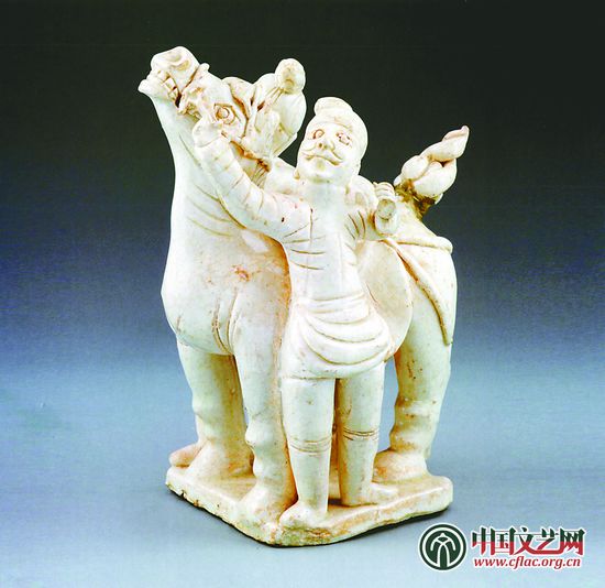 除了精美器物之外,在展覽的“天下瓷都”部分,看起來很“萌”的北宋青白釉牽馬俑也吸引了不少觀眾的目光。這件胡人牽馬俑為手工成型,1970年于江西省景德鎮(zhèn)市郊新平公社洋湖大隊出土,在昂首、齜牙、翹尾的馬兩側(cè),各塑有一尊圓目、高鼻、發(fā)髻高挽、腳蹬長靴、身著短袖褂的胡人,其中一名胡人伸手作牽引狀,馬背上馬鞍繩套齊全。據(jù)了解,胡人牽馬俑多見于唐三彩,反映了唐人通過絲綢之路與外域的密切聯(lián)系;而在宋代,絲綢之路被切斷,中國和西方的陸上聯(lián)系大大減少,中國人與外國人的接觸機會相對少于唐代,“似乎宋人是憑著對胡人的大膽想象燒制出這件瓷器的”,工作人員如是說。