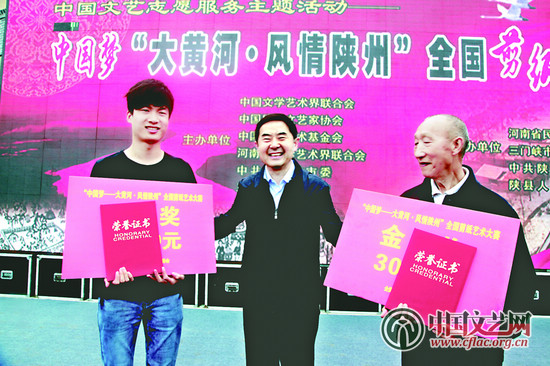 中國(guó)民協(xié)分黨組書(shū)記、駐會(huì)副主席羅楊,中國(guó)文聯(lián)國(guó)內(nèi)聯(lián)絡(luò)部協(xié)會(huì)工作處處長(zhǎng)苗宏,中國(guó)民協(xié)顧問(wèn)、河南省民協(xié)主席夏挽群,河南省文聯(lián)副主席、省民協(xié)秘書(shū)長(zhǎng)程建軍,三門(mén)峽市委副書(shū)記郭紹偉,陜縣縣委書(shū)記高永瑞等領(lǐng)導(dǎo),以及出席全國(guó)剪紙藝術(shù)大賽培訓(xùn)暨動(dòng)態(tài)論壇的專家學(xué)者、來(lái)自全國(guó)的剪紙藝術(shù)家、陜縣及周邊地區(qū)的剪紙藝人和剪紙愛(ài)好者上千人出席了頒獎(jiǎng)儀式。儀式結(jié)束后,與會(huì)人員共同觀看了具有濃厚地域特色的大型文藝演出《陜縣放歌》。