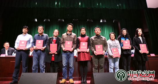 獲表彰的先進集體和個人代表上臺領獎。中國文藝網 周春桃 攝