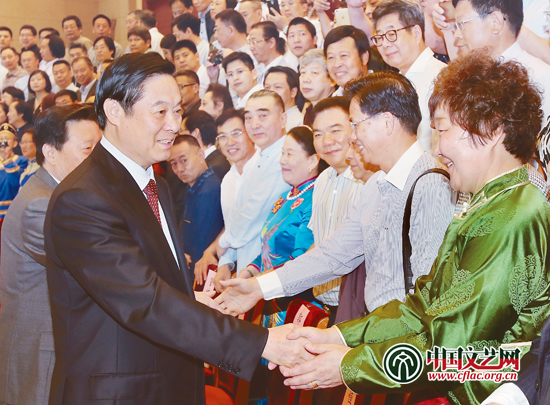 6月13日,中國民間文藝家協會第九次全國代表大會在北京開幕。中共中央政治局委員、中央書記處書記、中宣部部長劉奇葆親切接見與會代表。 本報記者 孟祥寧 攝