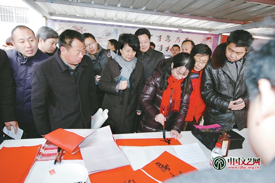 2015年2月,河南省委常委、宣傳部部長趙素萍等參加為群眾書寫春聯活動