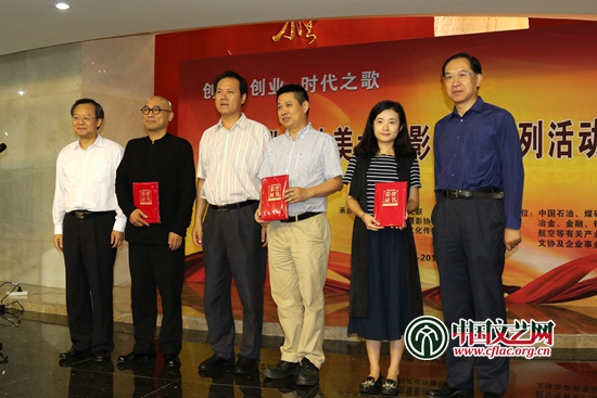 中國文聯黨組成員、副主席李前光,中國文聯黨組成員、書記處書記陳建文,中國企業文化促進會名譽主席、中華全國總工會原副主席倪健民為承辦單位代表頒發榮譽證書 中國文藝網 王渝 攝
