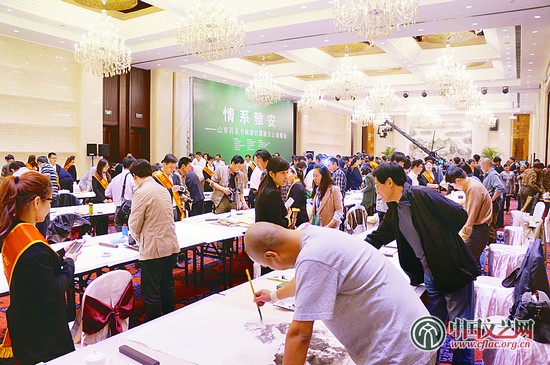 2013年4月27日,“情系雅安——山東百名書畫家抗震救災公益筆會”創(chuàng)作現(xiàn)場