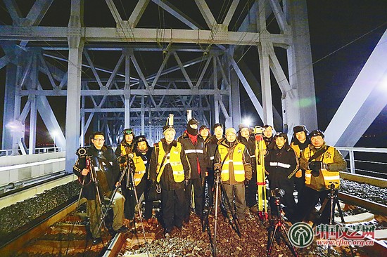 2014年2月10日,“山東攝影家鐵路春運行”系列活動中攝影家走進濟南西工務段與夜間檢修鐵路的職工合影留念