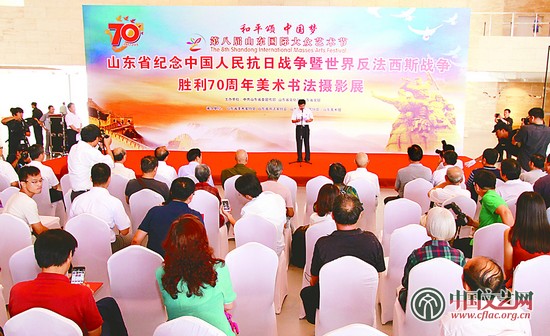 2015年8月15日,山東省紀念中國人民抗日戰(zhàn)爭暨世界反法西斯戰(zhàn)爭勝利70周年美術(shù)書法攝影展在山東省美術(shù)館舉行