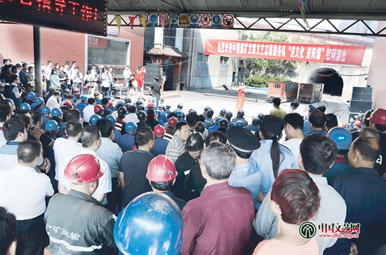 2015年5月23日,中國煤礦文聯文藝志愿者服務隊赴山西陽泉煤業集團進行文藝志愿服務活動。圖為文藝演出現場