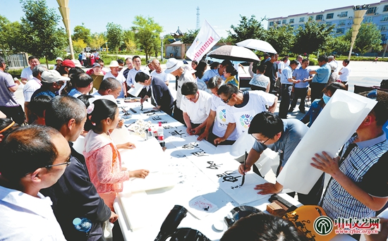 2015年5月,新疆生產建設兵團書法家在十三師團場現場創作