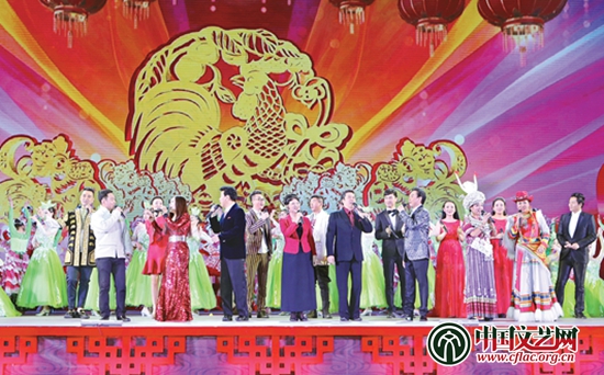 百花迎春辭舊歲,雄雞高唱賀新年。1月7日下午,北京人民大會堂宴會廳里張燈結彩、笑語歡歌、春意盎然,來自各藝術門類的老中青幾代藝術家2000余人歡聚一堂,共襄“百花迎春——中國文學藝術界2017春節大聯歡”。這是中國文聯第十次全國代表大會、中國作協第九次全國代表大會閉幕后不久舉辦的一次文藝界大聚會,集中展現了近年來文藝界深入學習貫徹習近平總書記在文藝工作座談會和中國文聯十大、中國作協九大開幕式上的重要講話精神,堅持以人民為中心的創作導向,深入生活、扎根人民,創作優秀作品,服務基層群眾,繁榮發展社會主義文藝的豐碩成果和昂揚向上的精神風貌。