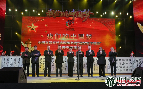 1月16日至17日,“我們的中國夢”中國文聯文藝志愿服務團“送歡樂下基層”慰問演出活動走進寧夏固原,先后在固原市、彭陽縣兩地開展慰問演出、書畫輔導交流等活動。此次活動由中國文聯、中國文藝志愿者協會、寧夏回族自治區黨委宣傳部主辦,中國文聯文藝志愿服務中心、寧夏回族自治區文聯、固原市委宣傳部、固原市文聯、彭陽縣委、彭陽縣人民政府承辦。中國文聯黨組書記、副主席趙實,寧夏回族自治區黨委副書記崔波,中國文聯黨組成員、副主席李前光,寧夏回族自治區黨委常委、固原市委書記紀崢出席活動。迪麗娜爾·阿布拉、孟廣祿、姜昆、廖懇、杜銀杰、鄭歌平、馬漢成等中國文聯、寧夏有關方面和固原市負責人,以及劉蘭芳、蘇士澍、邱運華、陳洪武等藝術家參加活動。這是第十次全國文代會后中國文聯組織的最大規模“送歡樂下基層”活動。