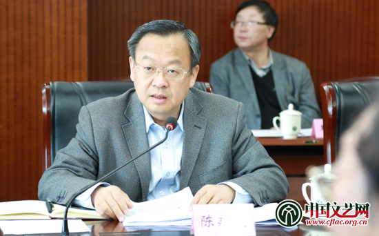 中國文聯黨組成員、書記處書記陳建文主持座談會。中國文藝網 白偉 攝