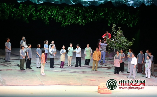如何把一個先進人物塑造為一個“藝術典型”,通過藝術的魅力去感染和感動觀眾?孫德民坦言,舞臺藝術需要集中呈現,要有矛盾沖突,不能像報告文學那樣比較平面地放上來。他主要抓住了兩點:一是走進人物的內心、探尋人物的心路歷程,去以情感人,其中最重要的是“抓住李保國極具個性的‘把農民變成我、把我變成一個老農民’的精神脈絡,使他于平凡中見偉大的大愛情懷貫穿始終”;二是以生活為基礎,把情感融化到豐富的人物關系、故事線索之中,抓住個性、抓住細節,還原真實的李保國。