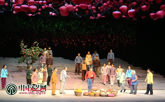 從果林間到山坡上,一個個鄉間地頭,留下了李保國太多的生命足跡。記者了解到,僅其中有一年,李保國科研團隊就有30多次到崗底,20多次到南和紅樹莓基地,20多次到綠嶺,10多次到平山葫蘆峪,7次到灤縣,7次到灤平,6次赴易縣,5次到青龍……在河北梆子《李保國》中,舞臺上的山坡布景、石墩碾子和漫山遍野的蘋果樹,把觀眾一下子帶入到了現場,更看到了李保國改變荒山野嶺為蔥蔥果園的“成績單”。