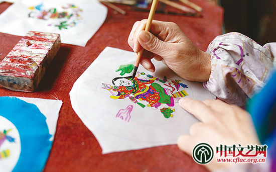 畫風箏時,一手托著風箏,一手握筆,直接往上畫,這可是真正的功夫活兒。