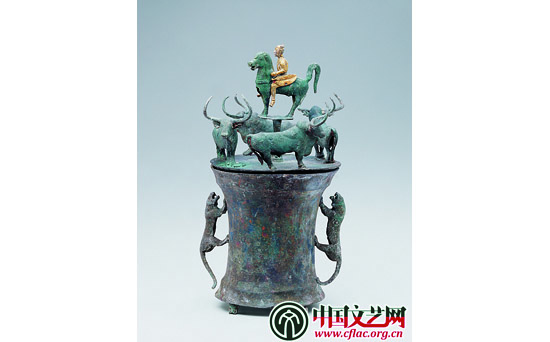 青銅四牛鎏金騎士貯貝器(西漢)