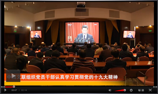 中國文聯黨組高度重視學習宣傳貫徹黨的十九大精神,認真謀劃部署。十九大召開前,中國文聯黨組書記、副主席李屹主持召開會議,專題研究部署中國文聯收聽收看黨的十九大開幕大會和學習貫徹黨的十九大精神等工作,進一步明確了傳達學習貫徹的時間安排、方法步驟、工作要求及責任分工,確保學習宣傳貫徹工作迅速展開、扎實落實、穩步推進。按照會議要求,中國文聯黨組下發了《中國文聯關于在黨的十九大期間認真組織黨員干部學習會議精神的通知》《黨的十九大會議期間中國文聯學習貫徹安排》《關于組織召開全國文藝家協會主席團和藝術家代表學習貫徹黨的十九大報告精神的通知》,對集中收聽收看習近平總書記在黨的十九大上的報告、開展學習座談討論、加強宣傳報道等事項做出具體安排部署。會議還就黨的十九大結束之后學習貫徹工作進行了認真研究。