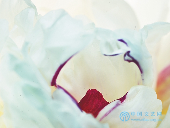 微距拍攝中的偶然性、隨機(jī)性是無法完全消除的,王昆峰的拍攝往往不是看到了什么才拍,而是在拍的過程中才看到是什么,甚至在拍攝放大后才完全看到拍了什么。因此這些作品許多是無法重復(fù)的,這會增加作品的價(jià)值,也使每一次拍攝都有面對未知的緊張與期待。他不依靠后期,力求充分顯示攝影這一視覺手段的固有特征,影像在后期只做剪裁和整體微調(diào)。他拒絕了使用多次曝光的建議,他說攝影就要在“咔嚓”一下中完成。全部拍攝他都始終“固執(zhí)己見”。他把激情洋溢的拍攝置于嚴(yán)謹(jǐn)?shù)目茖W(xué)精神之上,把高像素相機(jī)的表現(xiàn)力盡量地發(fā)揮出來,并在逐步得心應(yīng)手的實(shí)驗(yàn)探索中,盡量比別人走得更遠(yuǎn),這使他的微距牡丹最終打上自己的烙印,成為自己“特殊的說法”。從王昆峰的作品中,我們可以看出他是一個(gè)很理性又很執(zhí)著的人,他的用心和耐心都滲透在《絲路花語》之中,讓我們感動。