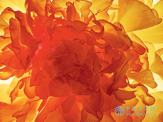 當(dāng)王昆峰選擇牡丹以及飛思XF100MP相機(jī)、微距鏡頭并在影棚拍攝的時(shí)候,他的目的就已經(jīng)十分明確。正如約翰·伯格所說:藝術(shù)家對題材的選擇基于某些理由或發(fā)現(xiàn)的意義,當(dāng)題材選定之后,創(chuàng)作本身的作用就是傳達(dá)及證明選擇的意義,所以題材開始于藝術(shù)家為了“特殊的說法”所選擇的事物。他還特別指出:對于藝術(shù)家而言,真正特殊的、有意義的是純粹視覺上的——色彩及形式。通過微觀牡丹,建構(gòu)一種超越尋常觀看經(jīng)驗(yàn)的、純粹的視覺形式,形成自己的“特殊說法”,并努力達(dá)到技術(shù)的極致,在牡丹或花卉攝影中實(shí)現(xiàn)創(chuàng)新或突破,這是王昆峰題材選擇和拍攝實(shí)踐的意義。