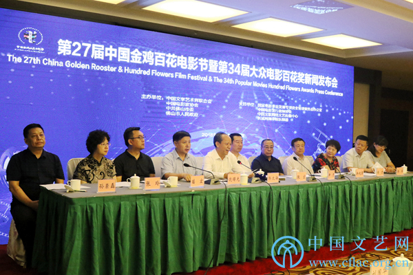 8月9日,第27屆中國金雞百花電影節(jié)暨第34屆大眾電影百花獎新聞發(fā)布會在京舉行。圖為佛山市委常委、宣傳部部長、順德區(qū)委書記郭文海通報本屆電影節(jié)籌備工作情況。中國文藝網(wǎng) 韓雪竹 攝