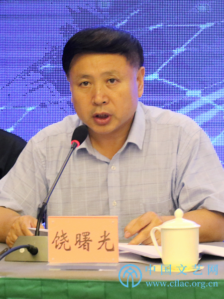 8月9日,第27屆中國金雞百花電影節(jié)暨第34屆大眾電影百花獎新聞發(fā)布會在京舉行。圖為中國影協(xié)分黨組成員、秘書長饒曙光主持發(fā)布會。中國文藝網(wǎng) 韓雪竹 攝