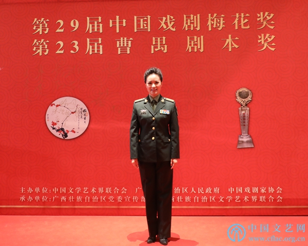 4月26日,第29屆中國戲劇梅花獎和第23屆曹禺劇本獎在廣西南寧頒獎。圖為榮獲第29屆中國戲劇梅花獎的歌劇類獲獎演員雷佳在紅毯留念。中國文藝網 郝紅霞 攝