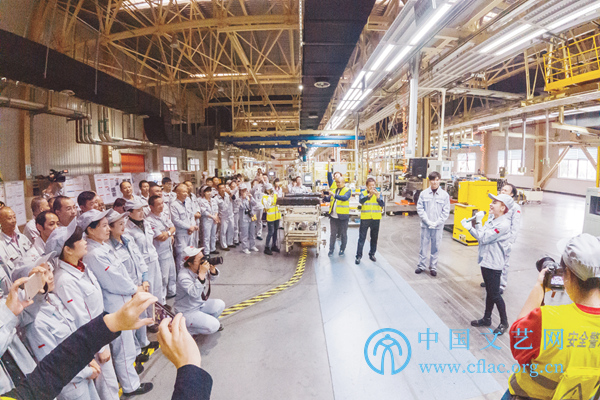 10月10日至13日,中國視協(xié)文藝志愿者小分隊走進東風商用車有限公司服務(wù)采風活動在湖北十堰開展。10月11日,藝術(shù)家們走進東風商用車技術(shù)開發(fā)車間,在發(fā)動機試驗室了解了DFCV發(fā)動機開發(fā)的部分性能開發(fā)試驗、機械功能專項試驗、試驗樣機的裝配與測量等工作,在工藝研究所感受了材料的防腐與潤滑等各項技術(shù),在整車試制室欣賞了各類東風新型樣車。藝術(shù)家們在缸套、挺桿體、二軸線壓裝P1齒輪、主線安裝配重塊等崗位進行了體驗。