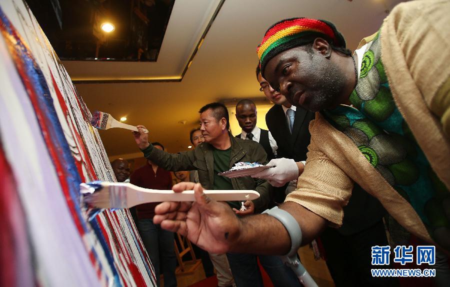 ??? 11月2日,兩國(guó)藝術(shù)家在展覽現(xiàn)場(chǎng)共同完成一幅具有莫桑比克風(fēng)情的畫(huà)作。當(dāng)日,中國(guó)—莫桑比克當(dāng)代藝術(shù)展“文化交響曲”在京開(kāi)幕。本次藝術(shù)展是“2012非洲文化聚焦”活動(dòng)的重要項(xiàng)目。此次藝術(shù)展共展出50余幅兩國(guó)藝術(shù)家的畫(huà)作。藝術(shù)展將于11月6日閉幕。(新華社記者 王申 攝)