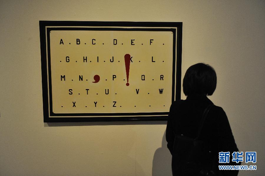 ??? 12月21日,一名參觀者在參觀展出作品《字母表》。當日,《圖與詞:馬格利特以來》展覽在北京中國美術館開幕。展覽共展出81件(套)源自比利時法語地區的作品和14件(套)中國當代藝術作品。展覽旨在通過原作與文獻的多媒體展示,實現中外藝術家們有關“圖”與“詞”的藝術創作之間形成跨越地域和歷史的對話,探索現當代藝術史上關于繪畫、造型藝術與書寫、文學語言之間的關聯命題。(新華社記者 魯鵬 攝)