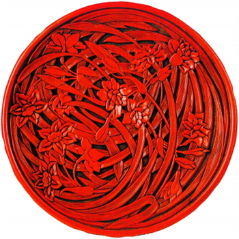 剔紅——剔紅是在漆胎上髹一定厚度的朱漆,之后在漆上雕刻花紋。