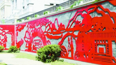 近日,在長沙市先導(dǎo)區(qū)梅溪湖一號的景觀墻上,由湖南師范大學(xué)藝術(shù)學(xué)院5位教師集體創(chuàng)作的巨幅景觀剪紙壁畫《瀟湘情緣》驚艷亮相。剪紙壁畫長182米、高2米,描繪了炎帝陵、舜帝陵、里耶古鎮(zhèn)、浯溪古鎮(zhèn)、湘西鳳凰、岳陽樓、南岳衡山、岳麓書院、韶山等著名湖湘景觀,以及馬王堆、劉??抽缘忍厣就廖幕?/p>