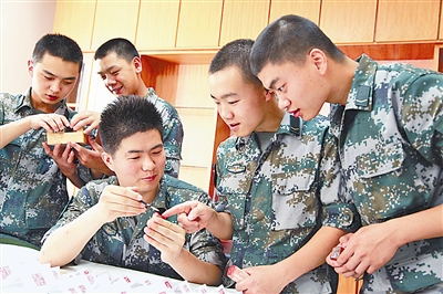 近日,在新疆軍區某綜合倉庫多功能廳,一個小型篆刻作品展吸引了官兵的目光。90余方印章的主人、下士吳興闖給戰友們講述著每一方印章的內容和寓意。吳興闖這樣描述對篆刻的感覺:“尋芳幽徑方寸間,刀筆之外意盎然。”筆者也不禁被他八年如一日癡迷篆刻不言悔的精神所感動。