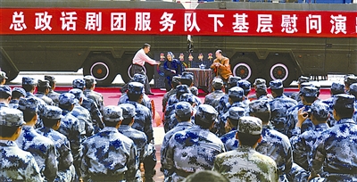 (上方照片為總政話劇團(tuán)演員為基層官兵表演小品。作者提供)