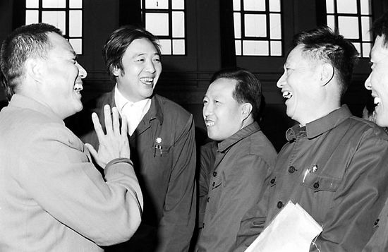 鄧友梅、福庚、馮驥才、費禮文在第四次文代會上。圖片選自1980年出版的《文壇繁星譜——中國文學藝術工作者第四次代表大會攝影集錦》