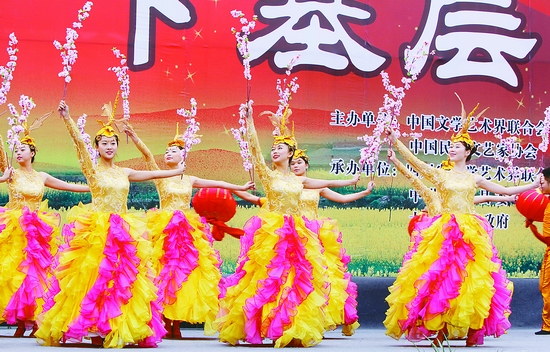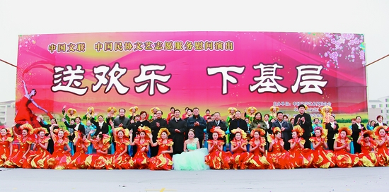 中國文聯(lián)、中國民協(xié)文藝志愿者與當(dāng)?shù)丶钨e和演員合影留念