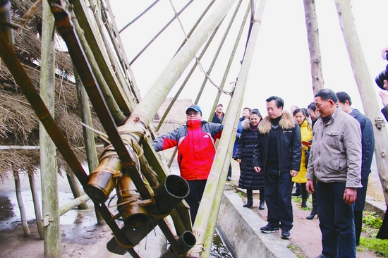 藝術(shù)家在卓筒古井采鹽遺址保護(hù)區(qū)了解卓筒井的歷史