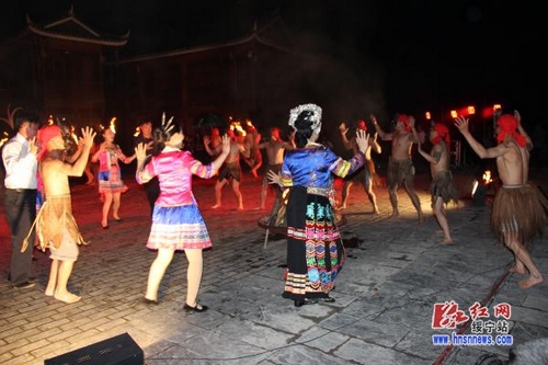 “狂歡苗家"四八",體驗神奇黃桑”。5月17日至19日,綏寧縣隆重舉行苗族“四·八姑娘節(jié)”。圍繞“好客苗姑、千年苗俗、傳統(tǒng)苗藝、精彩苗技”,該縣在關(guān)峽苗族鄉(xiāng)、黃桑坪苗族鄉(xiāng)、寨市苗族侗族鄉(xiāng)三個民族鄉(xiāng)舉行一系列具有苗族風情特色的活動。在大園、上堡等村寨,多情的苗姑為歡迎尊貴的客人,捧起了醇濃撲鼻的攔門酒,搭起了豐盛絕倫的合攏宴,端出了香氣清馥的油茶,烹出了誘人垂涎的烏米飯,唱起了纏綿婉轉(zhuǎn)的苗家山歌,挑起了熱情火辣的蘆笙舞。游客們除了欣賞到苗族婚俗、侗寨夜歌、祭火、祭狗、苗王背媳婦、苗族插繡、儺舞及草龍舞等古老苗俗,還親自參與捉魚、爬古藤、穿情侶同心鞋、挑戰(zhàn)苗家大力士和吹木葉、對山歌等苗鄉(xiāng)民俗活動。民情風情文藝匯演讓游客置身神秘苗鄉(xiāng)的美麗夢境,感受多姿多彩的苗家文化;琳瑯滿目的非物質(zhì)文化遺產(chǎn)攤點,為游客展示剪紙、苗繡、雕花蜜餞等傳統(tǒng)苗族手工藝以及香菇、木耳、干筍、米酒、臘肉、烏米飯、青錢柳等傳統(tǒng)苗鄉(xiāng)特產(chǎn)。苗家斗高腳馬、蕩秋千、摔跤、打地老鼠、苗家大力士擂臺賽等精彩苗家特技讓廣大游客大飽眼福;紅紅的篝火、濃濃的鼓聲、古老的儺舞,更是讓廣大游客激情狂歡。