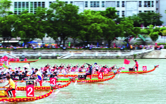 陸龍舟是嶺南地區(qū)具有特色的傳統(tǒng)民間藝術,范和陸龍舟起源于清朝光緒年間,距今有200多年歷史,是該地祭祀媽祖的一種民間習俗,祈求民康物阜、風調雨順、五谷豐登、國泰民安。每逢端午節(jié)、農歷五月初二,龍舟隊去巽寮迎接天后宮媽祖,初五舉行龍舟賽或在隆重節(jié)日活動中表演,甚至大型醮會、大型表演節(jié)目都有參加。
