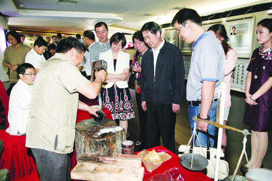 羅楊(右四)等參觀安徽民間工藝名家精品邀請展